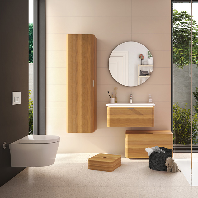 VitrA’nın zamansız koleksiyonu Nest Trendy’de ahşap ve beyaz dengeli bir şekilde kullanılır. Bu denge ise koleksiyonun tasarımcılarının kültüründen köken alır. Finlandiya’da kurulmuş olan Pentagon Design tarafından tasarlanan Nest Trendy, İskandinav tasarımlarında yaygın olarak yaratılan ahşap ve beyaz dengesinin çok iyi bir örneğidir.