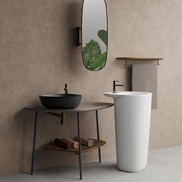 Koleksiyonun tüm öğeleri, yenilikçi ve modern bir banyo konsepti yaratmak için, karıştırmayı ve gruplamayı teşvik ediyor. Banyoda dikey konumlandırılan ve hareket edebilen Plural aynalar, esnekliğiyle paylaşımı artırıyor.