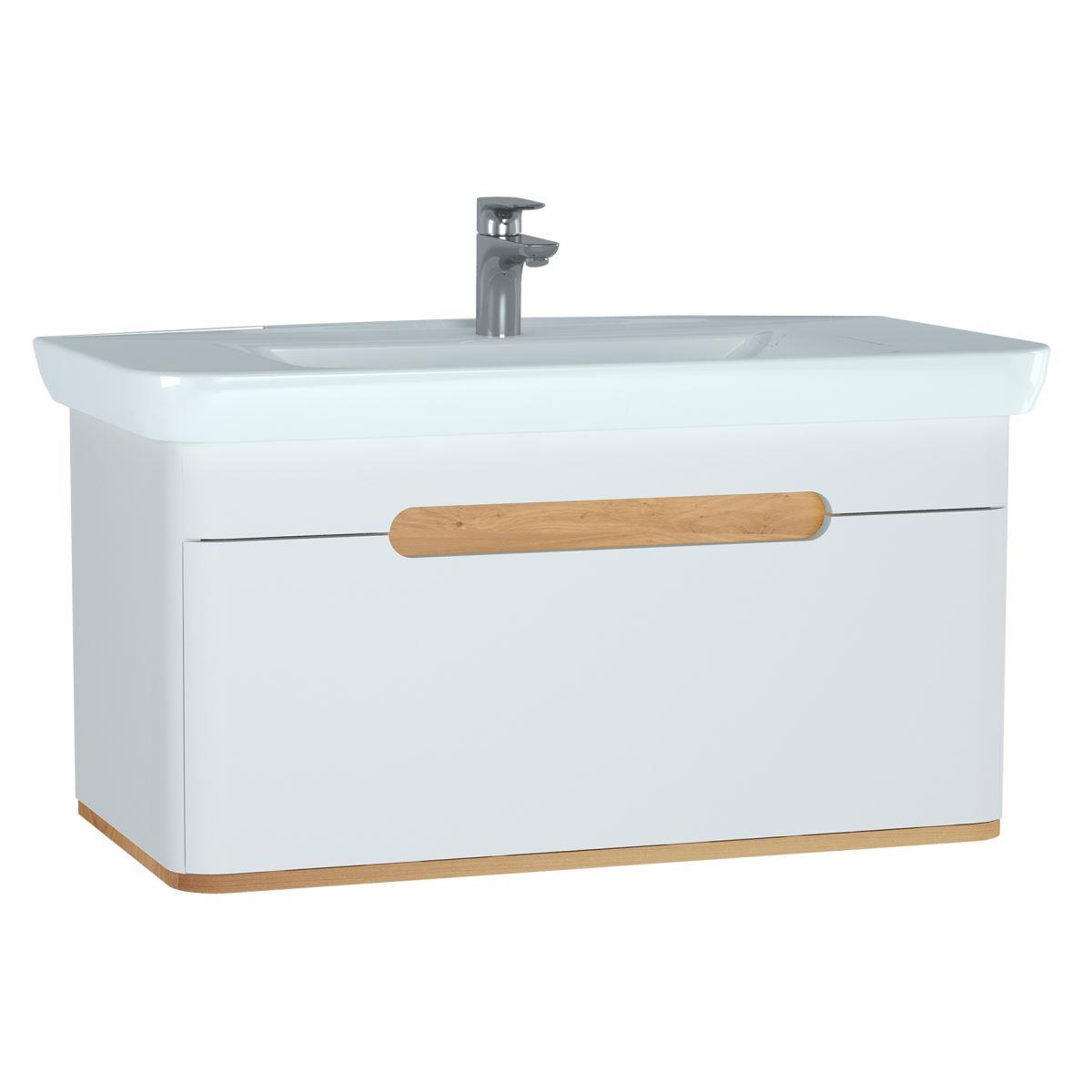 60814 Sento Lavabo Dolabı, 100 cm, bir çekmeceli, aydınlatmalı, mat beyaz